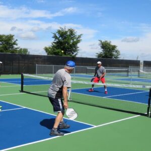 At the end of Orchard Place you’ll find a tennis court with one court set for tennis and another for pickleball.